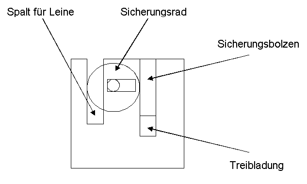 Der Vorteil: Das System müsste in jeder Einbaulage auslösen. Bei Johannes Vorschlag besteht die Gefahr, dass der Bolzen am Anschlag "zurückfedert", und das Seil dann doch nicht freigibt, wenn durch einen dummen Zufall (Shit happens) kurzfristig mal kein Zug auf der Leine ist. Grüsse Eberhard |