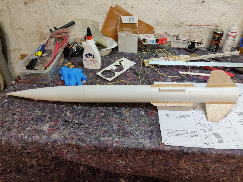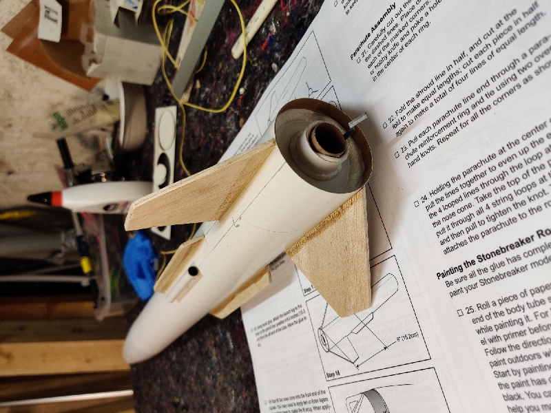 Was Achim meint ist, dass die Rakete mit nur einem Leitröhrchen leicht verkantet. Normalerweise setzt man zwei Leitröhrchen ein, eines in etwa am Schwerpunkt und eines am unteren Ende der Rakete. So verkantet die Rakete weniger und sie ist über eine größere Startstrecke geführt. Leitröhrchen sind bei der Größe von Rakete aber in Ordnung, mit 6 mm Leitstab sollte das kein Problem sein.