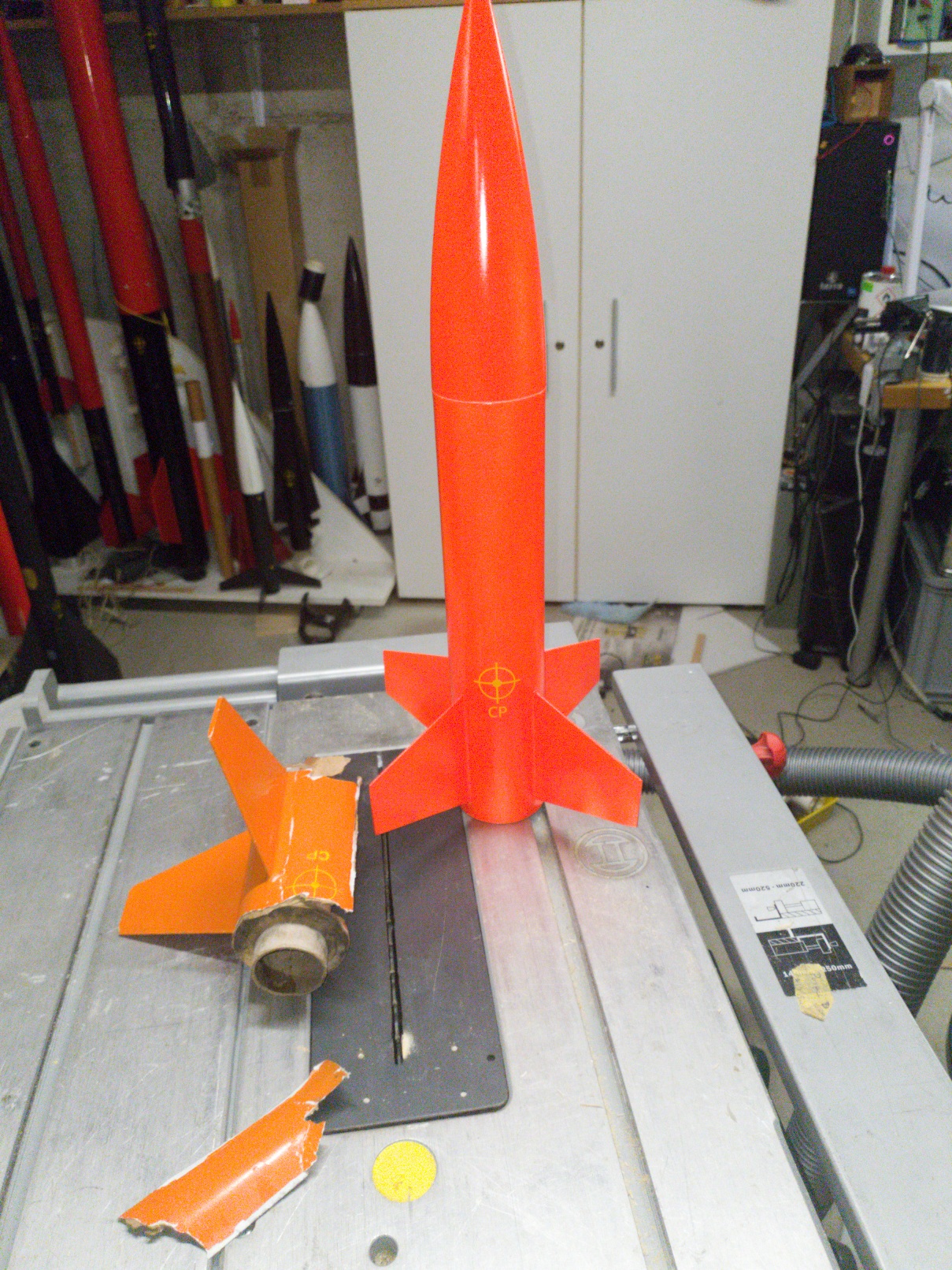 So ist die Shockcord befestigt. Fertig verklebt und grundiert