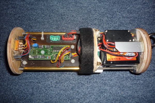 Die beiden 9V Blöcke sind ersetzt worden durch zwei 2s LiPo-Zellen 7,4V 850mA 15C.