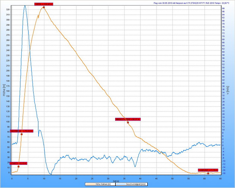 Kurze Brennzeit, mehr als ausreichend Schub für einen Bilderbuchflug ohne Mätzchen.