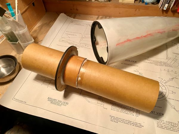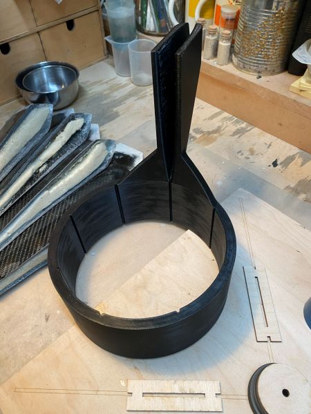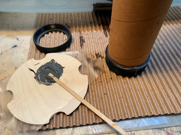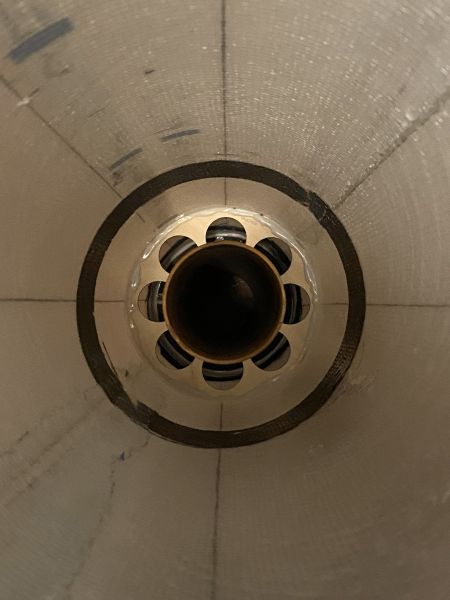 es geht ein kleines Stück weiter: Das 4" PML Rohr für das Innenrohr und das 4" Kupplerrohr konnte ich auf einer Formatkreissäge passend und pikobello winklig ablängen. Und wie der Zufall es so wollte. habe ich in einem Restekarton von mir noch ein 44cm langes Stück 54mm PML-Rohr gefunden, aus dem jetzt das 430mm lange Motorrohr wird. So muss mein schönes neues 54er Rohr gar nicht zersägt werden und kann für weitere Projekte ganz bleiben. Ist ja unfassbar, was das Zeuch mittlerweile kostet.... Hier ist das Innenleben mal lose zusammengesteckt. So soll das ganze Konstrukt später im Körperrohr sitzen. Aber am Stück geht das da nicht rein, jeder Ring möchte einzeln eingeklebt werden. Von daher geht das ab jetzt alles nur schrittweise und langsam, da jede einzelne Klebung in der warmen Küche übernachten möchte. Als erstes wird mit Hilfe von JB Weld temperaturfestem 2K Kleber aus meinem Motorrohr und dem Retainer ein Stück. Danach wird der Schubspant über das Motorrohr gesteckt und direkt auf dem Retainer aufliegend verklebt. Motorrohr mit Schubspant werden dann als ein Stück in die GFK Hülle eingesetzt, mit dem ersten Ring zentriert und verklebt. Sieht leider nicht so sauber aus, wie ich das gerne gehabt hätte, da die Harzpampe hierzu mit einem an einem Stab angebrachtem Löffel in den Tiefen des Körperrohrs appliziert wird. Egal, viel hilft viel. So sieht dann irgendwann mal das "Business End" aus Zweiter Ring aus 4mm Birke Dritter Ring aus 6mm Multiplex, hier endet das Motorrohr und beginnt das 4" Innenrohr Auf dem Ring eine Aufdoppelung aus 4mm Sperrholz als Zentrierung für das Innenrohr und als Verstärkung für den Aufhängepunkt der Schockleine. Unterhalb und oberhalb, (deswegen schaut das Motorrohr etwas durch den Spant hindurch) sind kurze Stützringe aus Phenolrohr aufgeklebt. Ich habe schon wesentlich massivere Aufhängepunkte gebaut, aber da war das Gewicht der Zelle auch drei, viermal höher. Das wird halten. Zwischen den Ringen müssen jeweils auch die Halter für die Railbuttons eingeklebt werden, da sonst die Ringe nicht mehr daran vorbei passen. Dazu habe ich M4 Gewindemuffen in einen Halter aus zwei Lagen Sperrholz eingeklebt und die so vorbereiteten Platten mit ordentlich angedicktem Harz und Glasmatte eingeklebt. Mit einer Schraube und einer Hülse wird der Halter in Position gehalten bis das Harz fest ist. Soweit Jan Geändert von Kabelmann am 19. Dezember 2025 um 23:17 |
